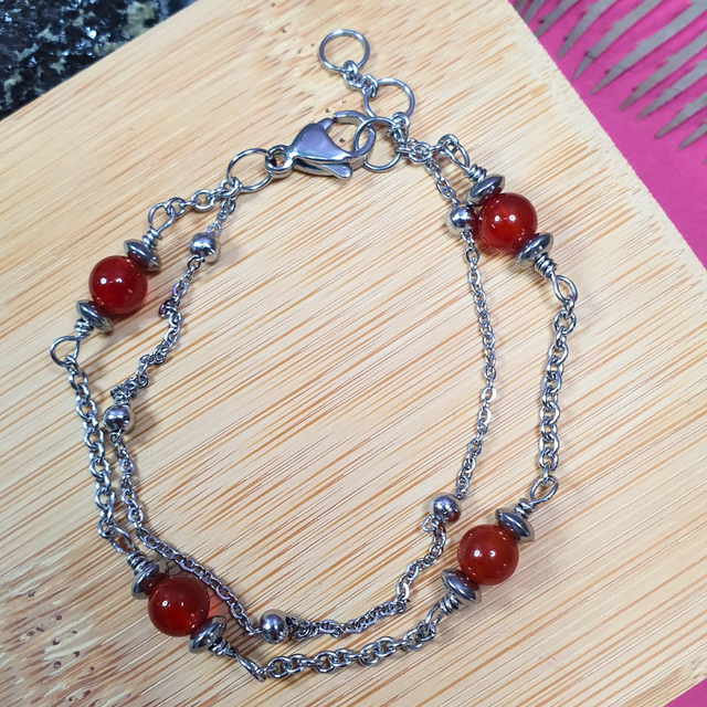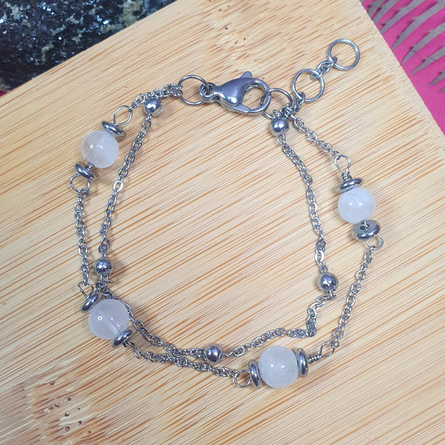 Le bracelet Perla sublime votre poignet avec son design à deux rangs : une délicate chaîne perlée et une maille forçat ornée de pierres naturelles. Fait main à Reims, il allie élégance et authenticité pour un style intemporel.