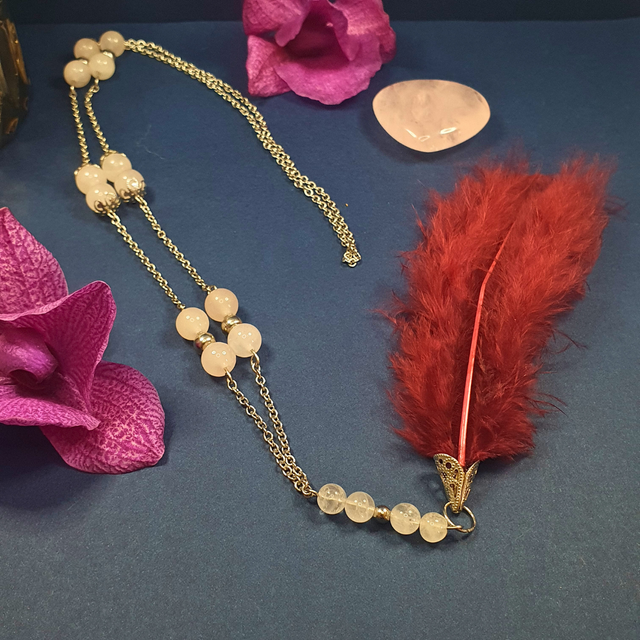 Le sautoir PLUMA séduit par son élégance bohème et son énergie apaisante. Entièrement fait main à Reims, il se compose d’une longue chaîne en acier inoxydable argenté, d’une plume comme pendentif et de perles naturelles d'aventurine verte ou de quartz rose. Ce bijou symbolise la légèreté et l’équilibre intérieur.